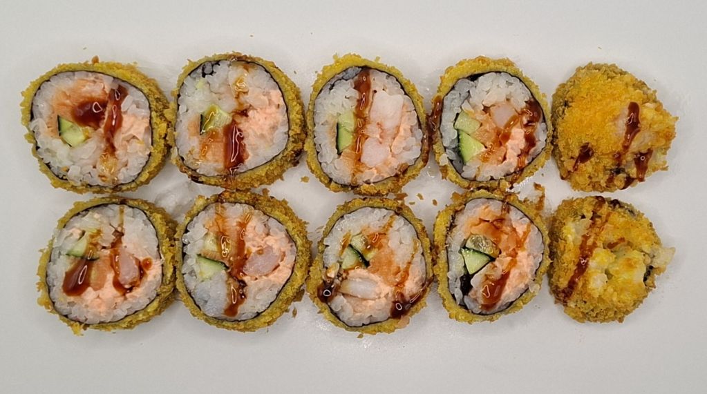 Состав: Рис, лосось, креветка, огурец, икра деликатесная