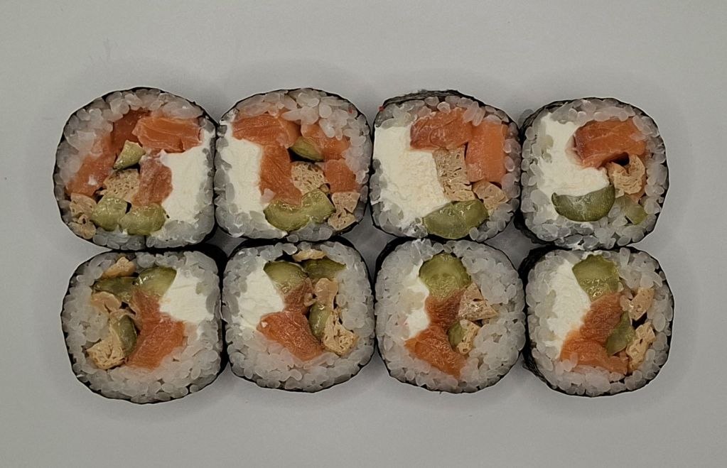 Состав: Рис, лосось, омлет, марин., огурец, сыр