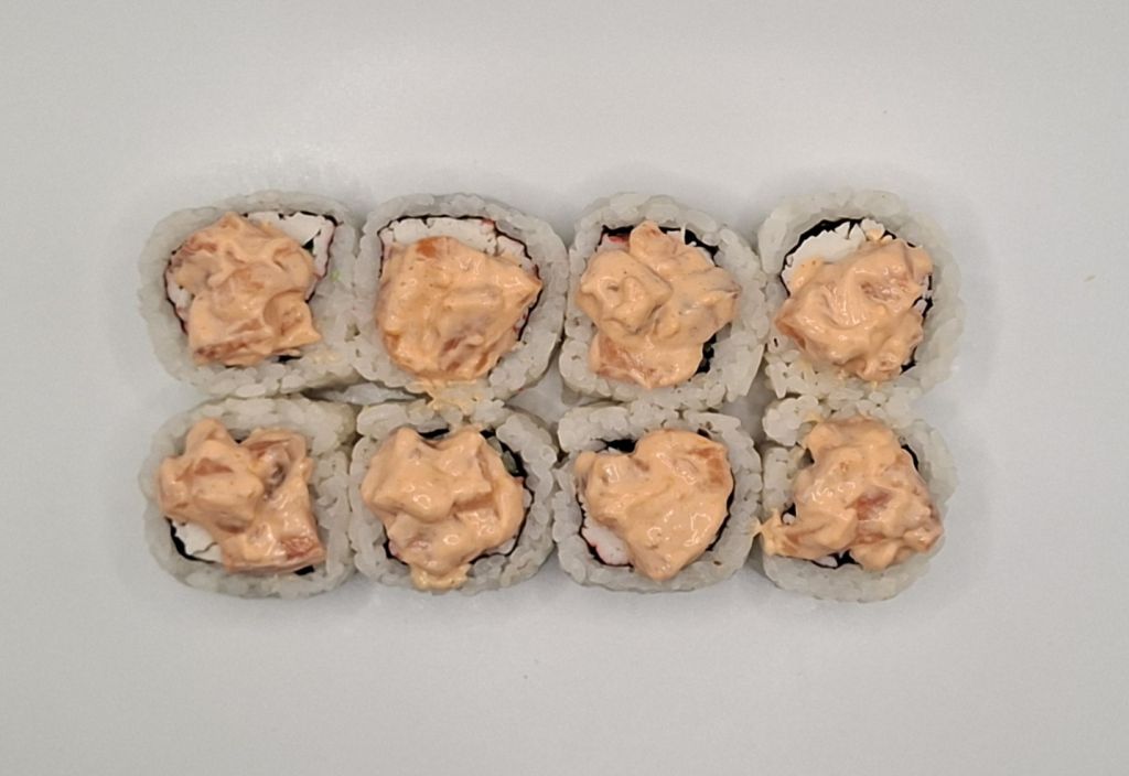 Состав: Рис, лосось, снежн краб, огурец, спайси соус