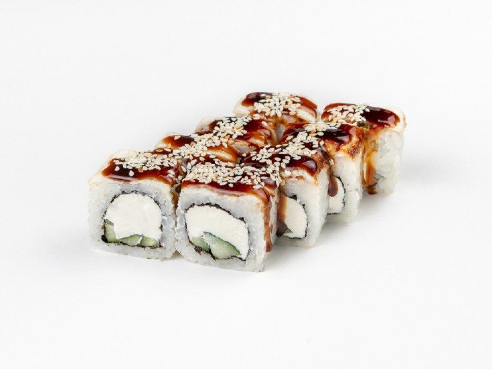 состав: угорь, сыр, огурец, соус унаги,кунжут
